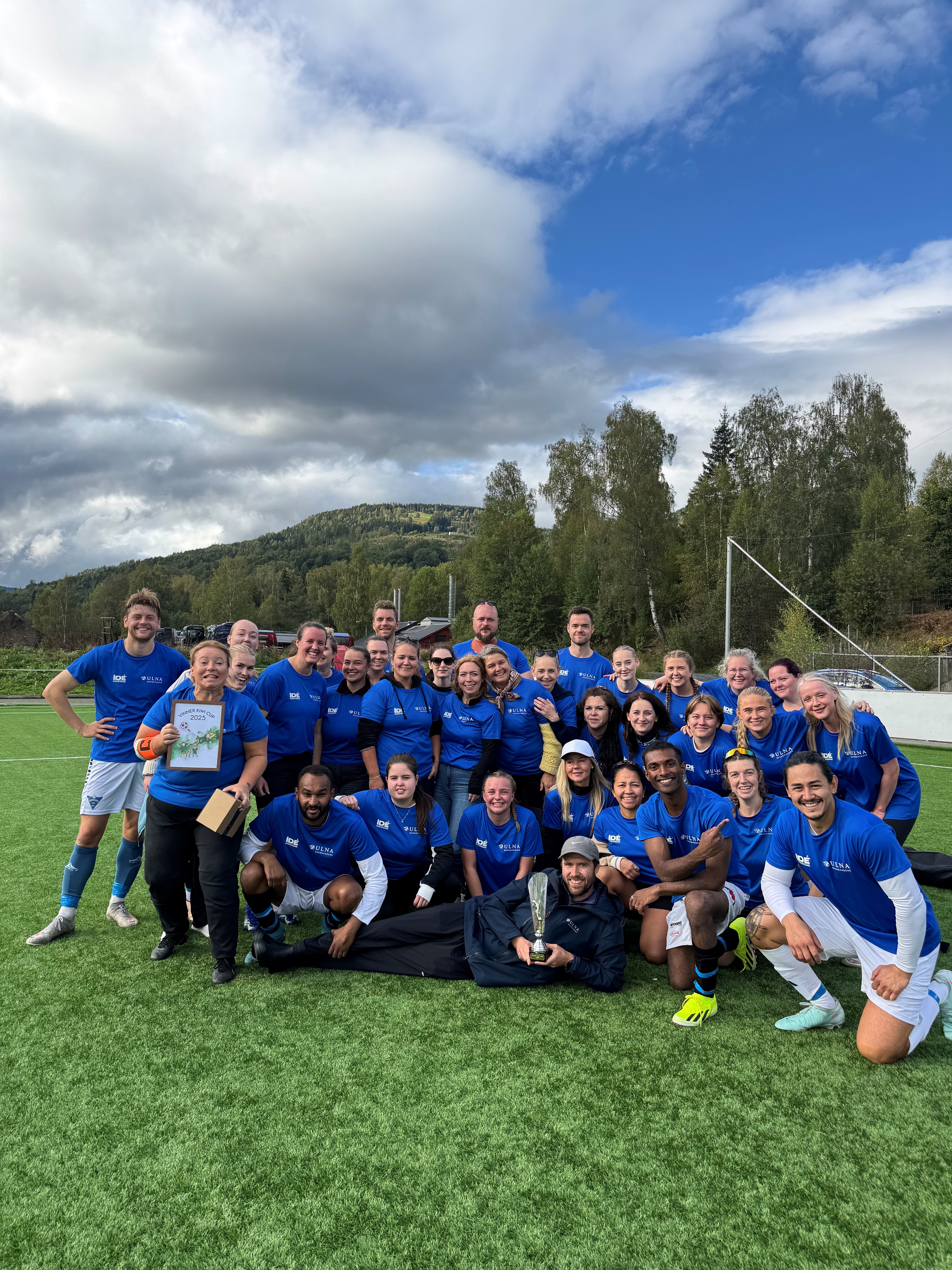 Nylig kom vi hjem fra Kiwi Cup på Lillehammer, hvor nærmere 50 ULNA-ansatte deltok. Med to lag i turneringen og stor heiagjeng fortsatte vi tradisjonen som nå er inne i sitt fjerde år. Også i år tok vi med oss den gjeve pokalen hjem til Oslo – men viktigst av alt var fellesskapet, fotballgleden og samholdet. Slike opplevelser styrker relasjonene på tvers av barnehagene våre og minner oss om hvor viktig det er å møtes, heie på hverandre og dele opplevelser. I en tid preget av usikkerhet er fellesskap en kraft som gjør oss sterkere – både som kollegaer og mennesker.